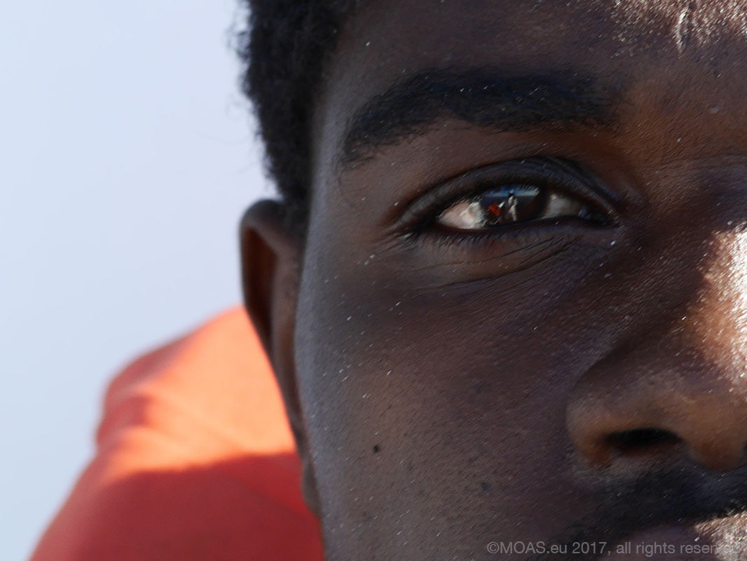 In the eyes of the people assisted by the MOAS crew we can see their happiness at being safe, just when they felt hopeless. Our crew often has to manage and work in extremely precarious conditions with almost deflated dinghies, where people on board try to plug a leak with their hands or clothes. In the worst cases they find people already in the water. Nevertheless, in their eyes you can see a feeling of salvation.